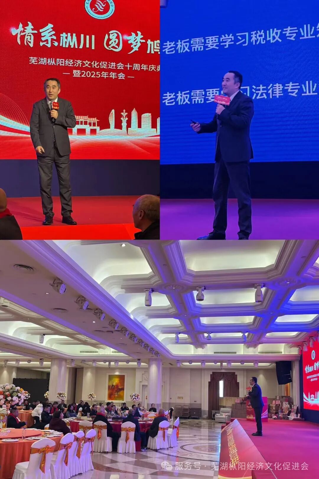 龙驾祥云门敛福,蛇衔瑞草户迎春。十载芜枞情,百年愫更浓。在这个特别的时刻,让我们共同祝贺芜湖枞阳经济文化促进会十周年庆典暨2025年年会圆满成功,愿未来的岁月里,芜湖枞阳经济文化促进会继续以党建为引领,众志成城,接续奋斗,继续以靓丽的成绩和卓越的成就,为实现芜湖“聚焦高质量、冲刺八千亿、建成副中心”的宏伟蓝图,为完成枞阳“实现高质量发展,推动创新驱动发展,增强经济发展新动能”的发展目标,为芜湖枞阳两地经济与社会的发展贡献力量,再创佳绩!最后再次祝福各位会员新年快乐、福暖四季、顺遂安康!
