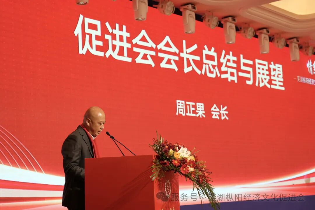 芜湖枞阳经济文化促进会于2014年成立,十年来在以周正果为会长的芜湖枞阳经济文化促进会的引领下,百万枞川儿女的优秀代表与400万江城人民同呼吸、共命运、心连心。以崭新的姿态奋斗在以周正果正锋钢铁为代表的各会长单位,以全新的风貌坚守在芜湖的各企事业单位和各个体工商业会员单位,以安徽省首位产业首席企业奇瑞为代表的各大名企,以安徽师范大学为代表的各大名校,以弋矶山医院为代表的各大名(医)院,以及各级党政机关里都有数不尽的枞阳籍精英与专家学者,十年来他们在发展两地经济,发动两地捐资助学,助力两地救危扶困等解决会员及家乡百姓急难愁盼问题上都大放异彩,硕果累累,为江城人民的经济与社会的发展、繁荣与进步作出了突出的贡献。号称“诗人之窟、文章之府、气节之乡”的枞阳与有着“有山有水有文化,大江大湖大梦想”的芜湖真可谓珠连璧合,凤翥鸾翔。