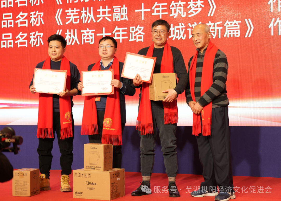 晚宴期间,由在芜湖枞阳籍退休老领导周玉良为本次十周年庆典大会主题征集优秀会员颁发奖品和证书。