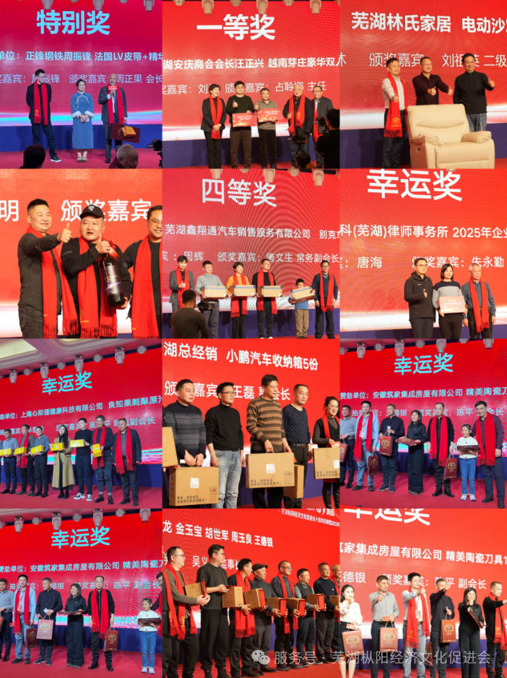 晚宴期间,一轮又一轮的抽奖活动和节目演出,将晚会推向高潮,在这个充满温情与活力的晚宴上,大家不仅享受着精彩的节目和激动人心的抽奖,更在交流互动中感受到浓浓的乡情和归属感。相信在未来的日子里,以乡情为纽带,以促进会为平台,大家携手同行,一定会为芜湖和枞阳两地的经济交流发展做出更大的贡献。